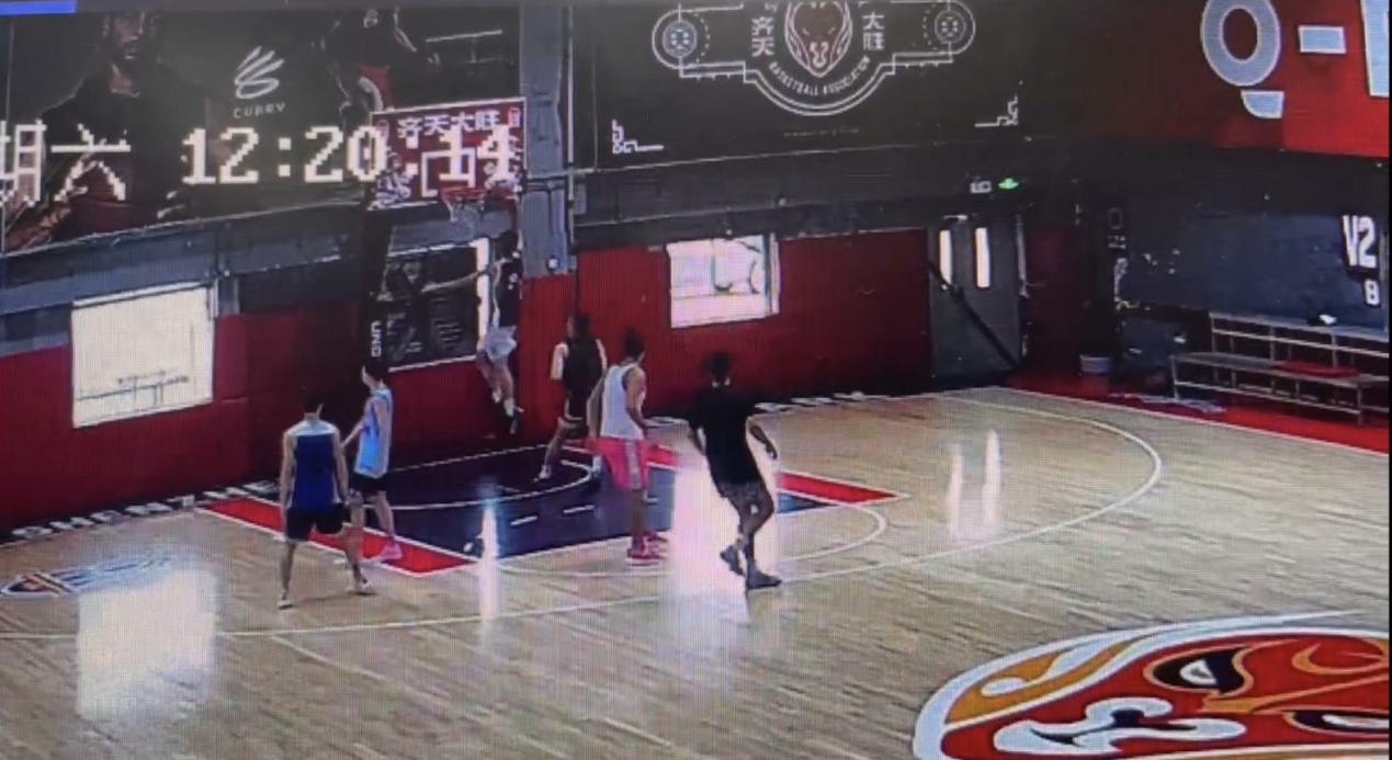 冯岩老师指导的篮球队在训练中