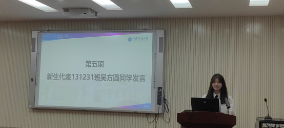 本科新生代表吴方圆同学分享了自己考上大学的历程,表达了对地大18小说 的热爱与憧憬,她决心奋发向上,砥砺前行,践行“艰苦朴素,求真务实”校训精神和“扎根中国,胸怀天下,勇攀高峰,追求卓越”的攀登精神,与葳蕤向上的地大共同成长。