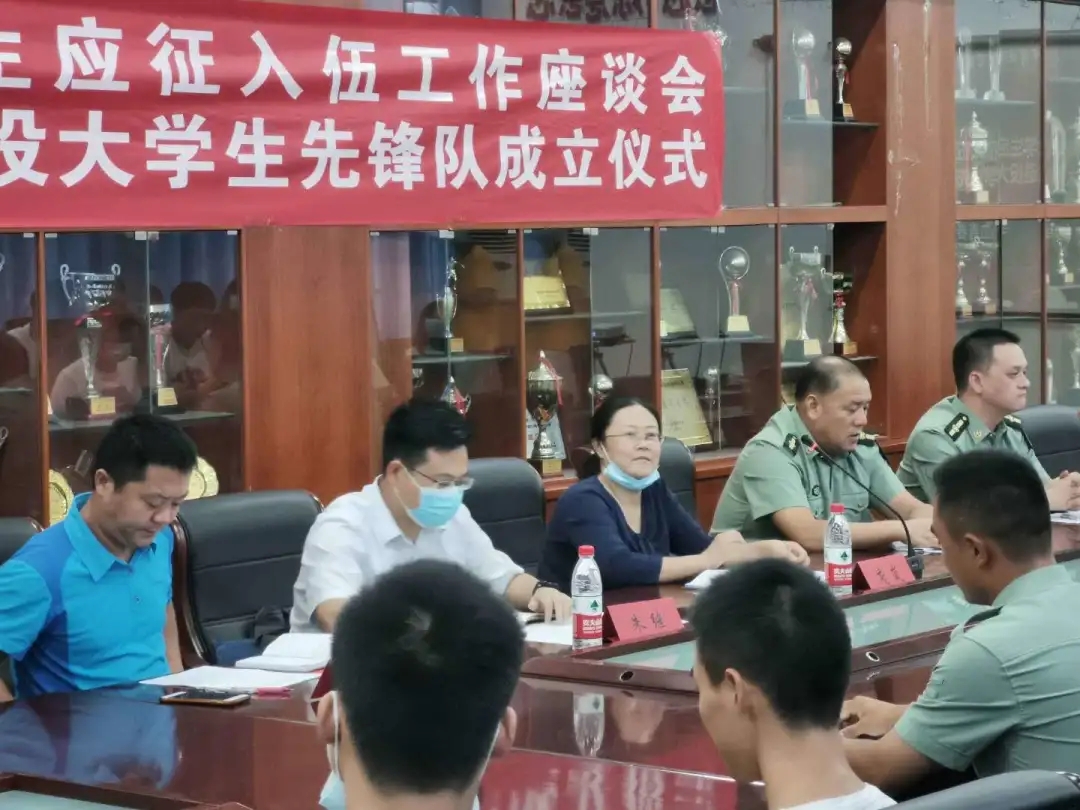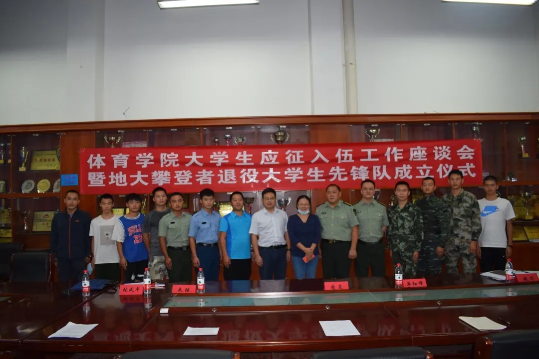 2020年9月10日15:00,18小说 在体育馆二楼会议室召开了18小说 大学生参军应征工作座谈会暨地大攀登者退役大学生先锋队成立仪式。出席此次会议的领导有武装部副部长单红峰,学工部副部长朱继,武装部老师魏刚,18小说 党总支书记庞岚,18小说 党总支副书记张延平。参与本次会议的人员有18小说 在校的退役大学生和2020年应征入伍学生,以及18小说 部分同学。会议由131181班的陈岳峰同学主持。