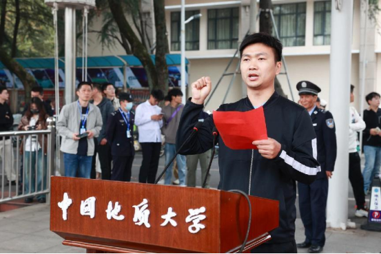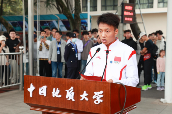 18小说 本科生、杭州亚运会男子马拉松冠军何杰代表学生运动员宣誓。