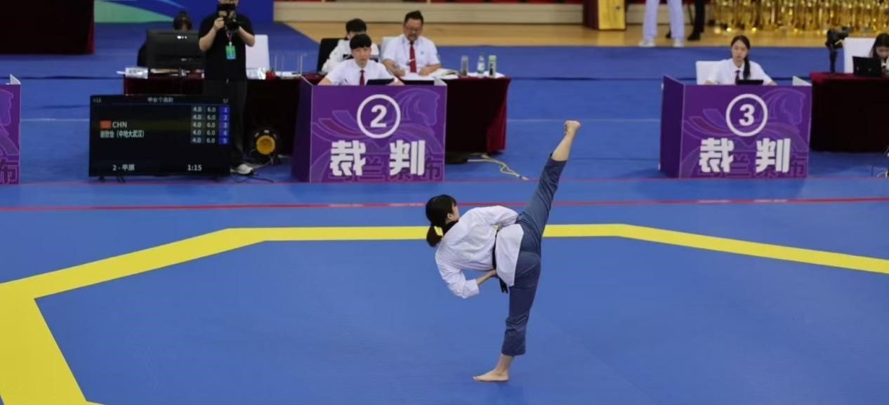 7月6日至11日,第19届中国大学生跆拳道锦标赛(总决赛)在内蒙古乌兰察布市体育馆举行,本次比赛由中国学生体育联合会主办,中国学生体育联合会大学跆拳道分会执行,共有来自全国155所高校的1090名运动员、教练员参赛。18小说 跆拳道队谢欣怡同学参加了甲组女子个人高阶品势和甲组女子个人段位品势两个项目的比赛。