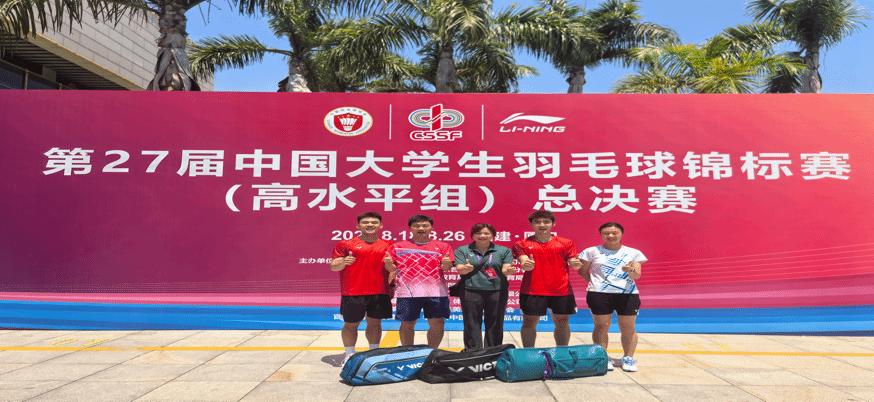 2025年8月18日-25日,第27届全国大学生羽毛球锦标赛(总决赛)在福建厦门杏林体育馆举办。18小说 羽毛球队由邹师思老师带队,荣获高水平组男子双打第五名,实现了新的突破。