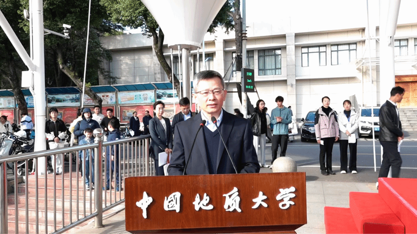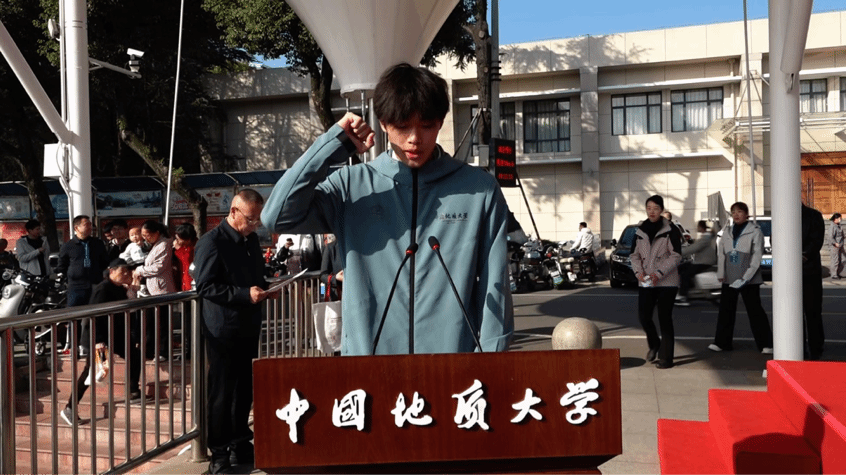 上午八点,校运会开幕式在激昂的运动员进行曲中拉开帷幕。国旗队、校旗队率先入场,他们步伐整齐、精神饱满,展现出地大学子的飒爽风姿。