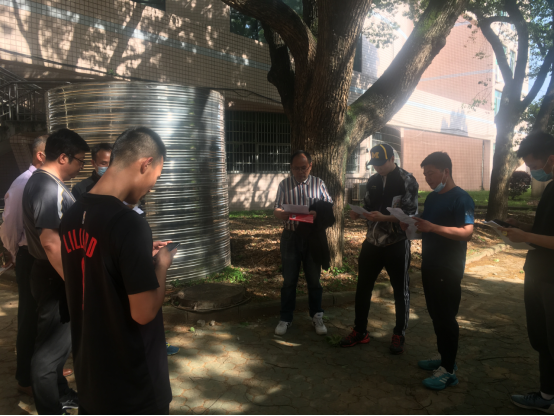公体支部党员认真研究行走路线