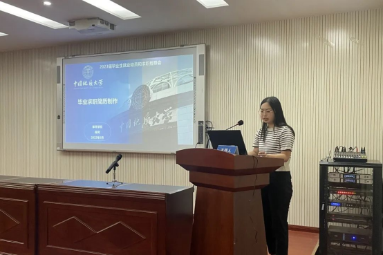 会议第二单元,毕业班辅导员陈爽从“历”尽人生、据理“历争”、同心协“历”三个方面深入讲解了简历制作的必要性及制作的方式方法,她强调简历制作应要匹配岗位需求、注重内容为王、定位准确、创意出彩、分模块盘点个人优势,并不断完善个人简历。简历作为求职道路上的一块敲门砖,唯有“历”经艰辛,方能美“历”动人。