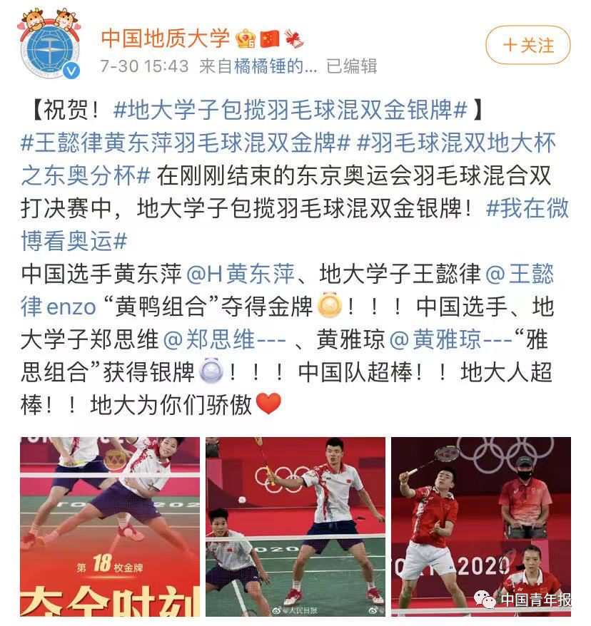 东京奥运会羽毛球混双决赛今天在两对中国组合间展开,经过三局苦战,王懿律/黄东萍以2:1战胜郑思维/黄雅琼获得冠军。由于双方十分熟悉彼此,奥运会决赛似乎成了国羽“内部教学赛”,不过丝毫不影响本场比赛的精彩程度,分差始终未能拉开,两个组合交替,领先联袂为球迷奉献了一场精彩对决。而东京奥运会赛场也再次为冠亚军升起了两面五星红旗。