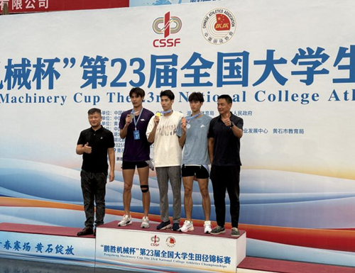 党委书记何建新、院长李元和副院长李伦亲临比赛现场,为运动员加油鼓劲。最终陈天尧同学跑出14秒00的健将成绩,获得男子丙组110米栏季军;韩添禛同学以14秒27的成绩获得男子丁组110米栏第五名。
