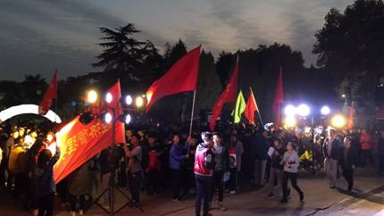 此次夜跑活动全程3公里,以西区体育馆为起点,不追求速度,只求运动快乐,让参与学生“嗨”起来!活动一开始,主持人就将气氛推向了高潮,同学们身穿活动T恤,有的手持荧光棒,有的佩戴荧光手环,在指导老师的指挥下,有序跑出了一条连接西区到北区的涓涓荧光河流。独特的跑步锻炼模式,不仅吸引了近千名同学积极参与,很多教职工及其家属也加入了夜跑队伍。